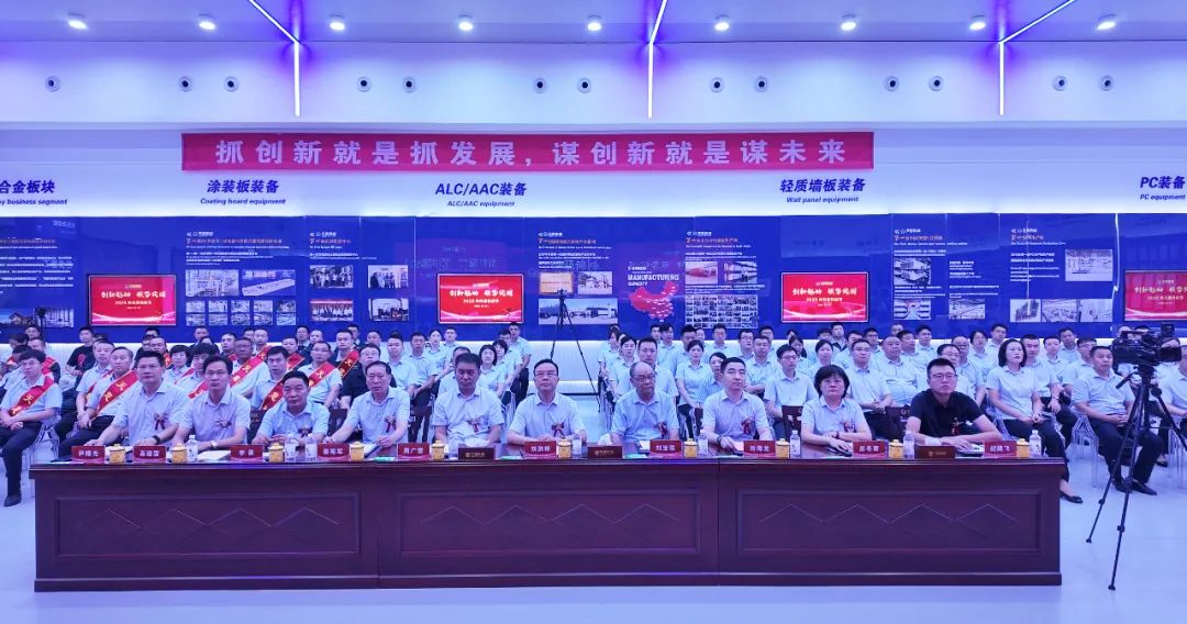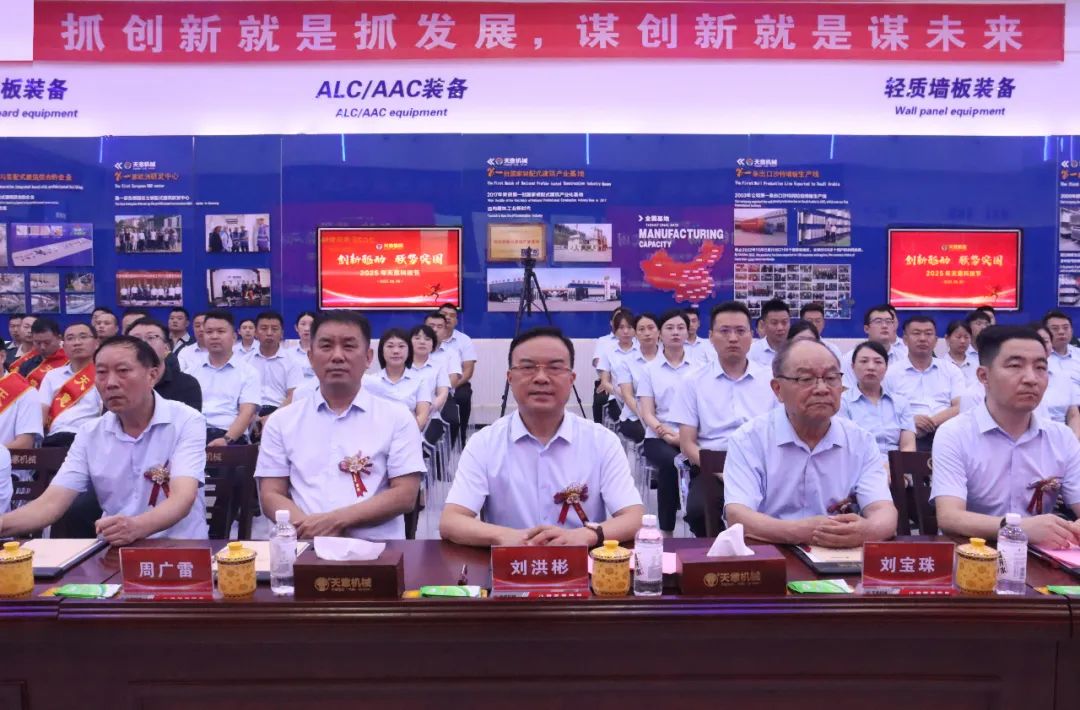 最后,集團董事長劉洪彬做集團總結(jié)及未來展望。劉總指出,天意上半年發(fā)展呈現(xiàn)三方面特點,第一,創(chuàng)新驅(qū)動:以創(chuàng)新為市場回暖積蓄力量。上半年,研發(fā)了模塊智能化柔性生產(chǎn)線,為模塊化房屋建造提供智能裝備,研發(fā)了光伏清掃機器人,提供光伏電站清潔解決方案。天意榮獲山東省五一勞動獎狀,入選山東省先進級智能工廠、省級專家服務(wù)基地,卓越也建成了新的工業(yè)互聯(lián)網(wǎng)展廳。上半年,產(chǎn)學(xué)研合作邁出新步伐,天意與山東大學(xué)共同舉辦了“天意杯”山東大學(xué)第五屆智造未來創(chuàng)新大賽,山東交通學(xué)院黨委書記王偉一行、山東建筑大學(xué)校黨委常委、副校長邱立平一行來集團參觀座談,共謀發(fā)展新篇章。第二,國際市場:用中國智造點亮"一帶一路"。上半年,天意參加了俄羅斯國際工程機械展、廣交會、德國寶馬展、漢諾威工業(yè)博覽會、沙特阿拉伯利雅得五大行業(yè)展覽會等重量級國際展會。塔吉克斯坦總統(tǒng)親臨考察的墻板項目,成為當?shù)鼐G色建筑的示范工程。與俄羅斯客戶簽訂了ALC和PC大單。這些突破不僅帶來了42%的出口增長,更讓中國建材高端裝備贏得了世界尊重。第三,強勢突圍:三大引擎驅(qū)動未來發(fā)展。在鞏固裝配式建筑裝備主業(yè)的同時,培育了三大新增長極,分別是光伏清掃機器人(已具備智能導(dǎo)航、自主清潔、高效節(jié)能等特點)、智慧物流(目前已有京東、拼多多、好想來等大型企業(yè)入駐)、新能源業(yè)務(wù)板塊(天意已實現(xiàn)了80%的綠電生產(chǎn),正在搭建離網(wǎng)儲能系統(tǒng),未來還將建設(shè)微電網(wǎng)和虛擬電廠)。