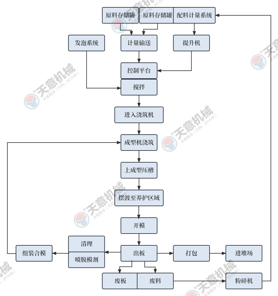 公司自主研發(fā)的大型攪拌設(shè)備配有自動配料系統(tǒng),結(jié)合材料的性能使料漿攪拌更均勻,能夠很好的融合在一起。料漿泵送系統(tǒng)更好的將攪拌好的料漿輸送到設(shè)備里面,澆注模式更簡單方便。發(fā)泡系統(tǒng)采用變頻發(fā)泡技術(shù),提高了發(fā)泡速度,節(jié)省了原材料,墻板成型機自動行走,產(chǎn)品成型速度高。