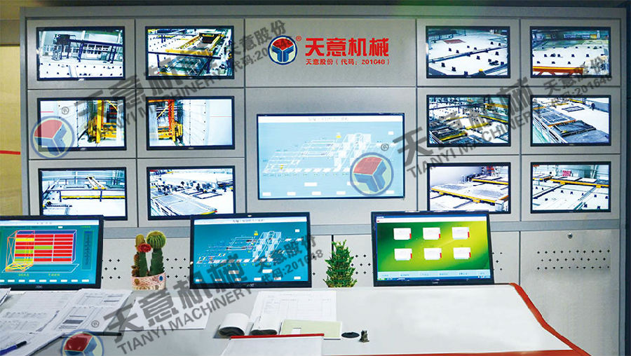 多功能平模墻板生產(chǎn)線中央控制,集PMS(生產(chǎn)管理)系統(tǒng)、ERP系統(tǒng),攪拌站控制系統(tǒng),全景監(jiān)控系統(tǒng)于一體,是工廠實(shí)現(xiàn)自動(dòng)化、智能化、信息化的核心。其配套的ERP系統(tǒng)借助RFID技術(shù)可實(shí)現(xiàn)構(gòu)件的訂單、生產(chǎn)、倉儲(chǔ)、發(fā)運(yùn)、安裝、維護(hù)等全生命周期管理。